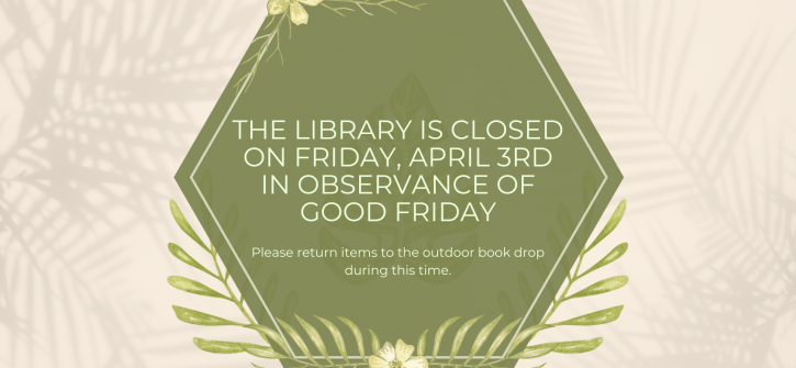 ~The library is closed on 4/3 in observance of Good Friday~